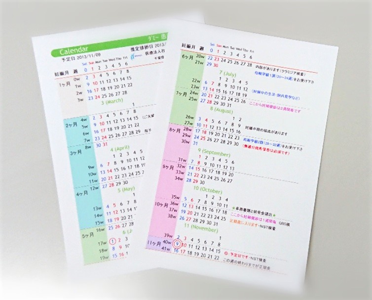 ※予定日からの週数が分かる妊婦さん専用の「妊娠カレンダー」をお渡しします。